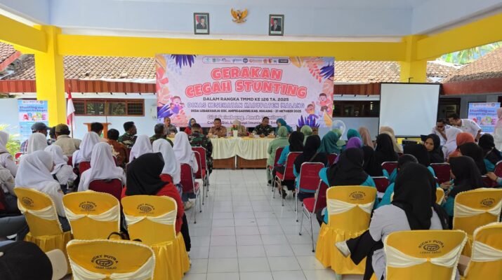 Ampelgading – Sinergi humanis terjalin erat dalam program non fisik TNI Manunggal Membangun Desa (TMMD) ke-126 Kodim 0818/Malang-Batu bersama dengan Dinas Kesehatan Kabupaten Malang bekerja sama menggelar penyuluhan penting tentang Gerakan Cegah Stunting bertempat di Balai Desa Lebakharjo Kecamatan Ampelgading Kabupaten Malang.