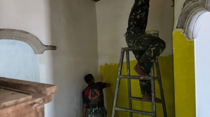 Satgas TNI Manunggal Membangun Desa (TMMD) Reguler Ke-127 Kodim 0819/Pasuruan kembali menunjukkan kepedulian terhadap fasilitas ibadah masyarakat. Prajurit Satgas melaksanakan pembersihan dan finishing kamar