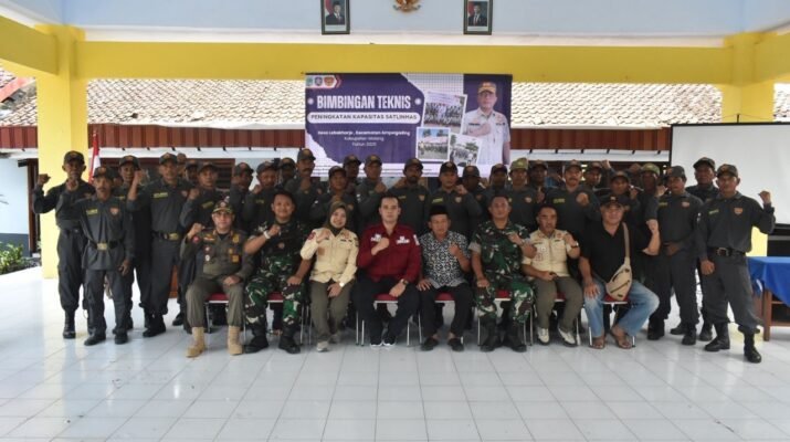 Malang – Satuan Tugas TNI Manunggal Membangun Desa (TMMD) ke-126 bersama Pemerintah Desa Lebakharjo dan Satuan Polisi Pamong Praja (Satpol PP) Kabupaten Malang menggelar bimbingan teknis peningkatan kapasitas Satuan Perlindungan Masyarakat (Satlinmas) di Desa Lebakharjo, Kecamatan Ampelgading, Kabupaten Malang, Sabtu (11/10/2025).